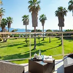 There is pedestrian access to a private beach with sun loungers, parasols, and towels.